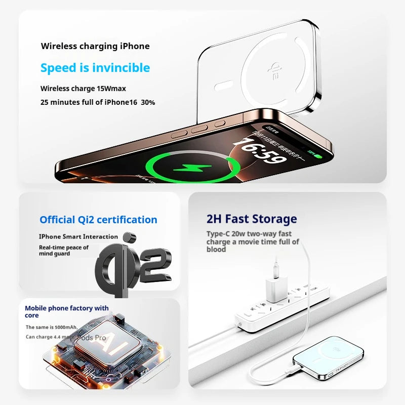 Dual-Charging Powerhouse – 15W Qi2 wireless + 20W USB-C PD fast charging